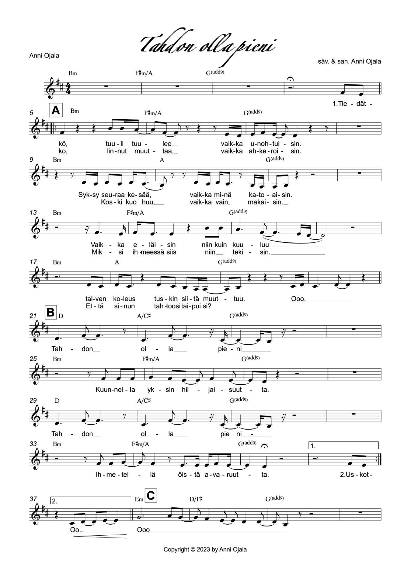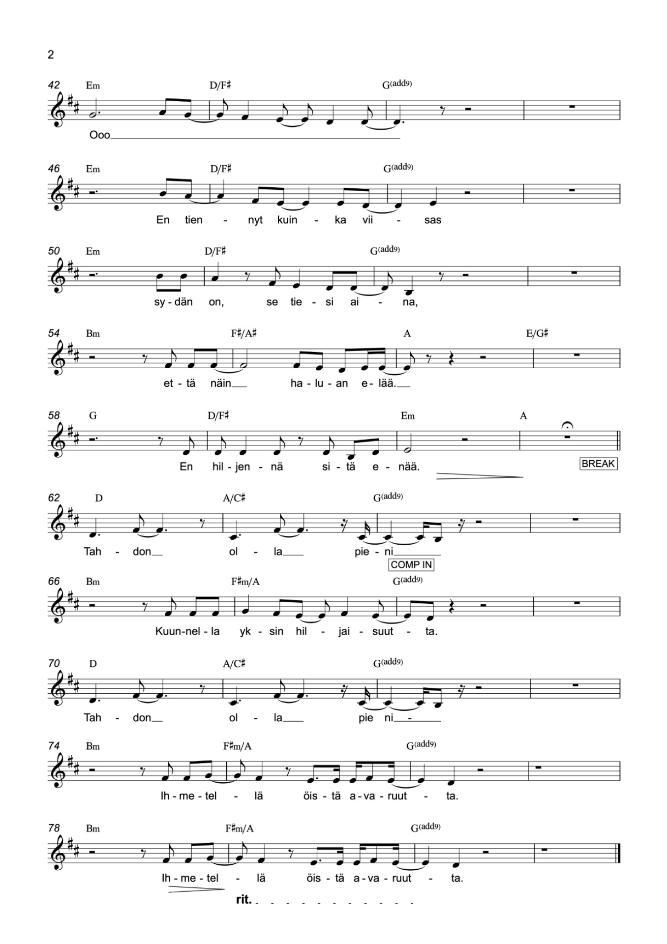 Tämän kappaleen olemme julkaisseet Loihtima -yhtyeen kanssa kesällä 2025. Nuotteja saa käyttää vain omiin ei-kaupallisiin tarkoituksiin ja niitä suojaa tekijänoikeus.
